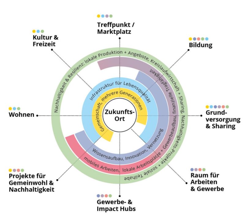 In der Vergangenheit waren solche Strukturen vielfach auf dem Land zu finden, sind jedoch mit der Zeit anderen Mechanismen gewichen. Mithilfe von Digitalisierung und zeitgemäßer Organisationsentwicklung lassen sich diese nun zeitgemäß in Modellprojekten mit Impulswirkung übersetzen: in sogenannte „Zukunftsorte“.